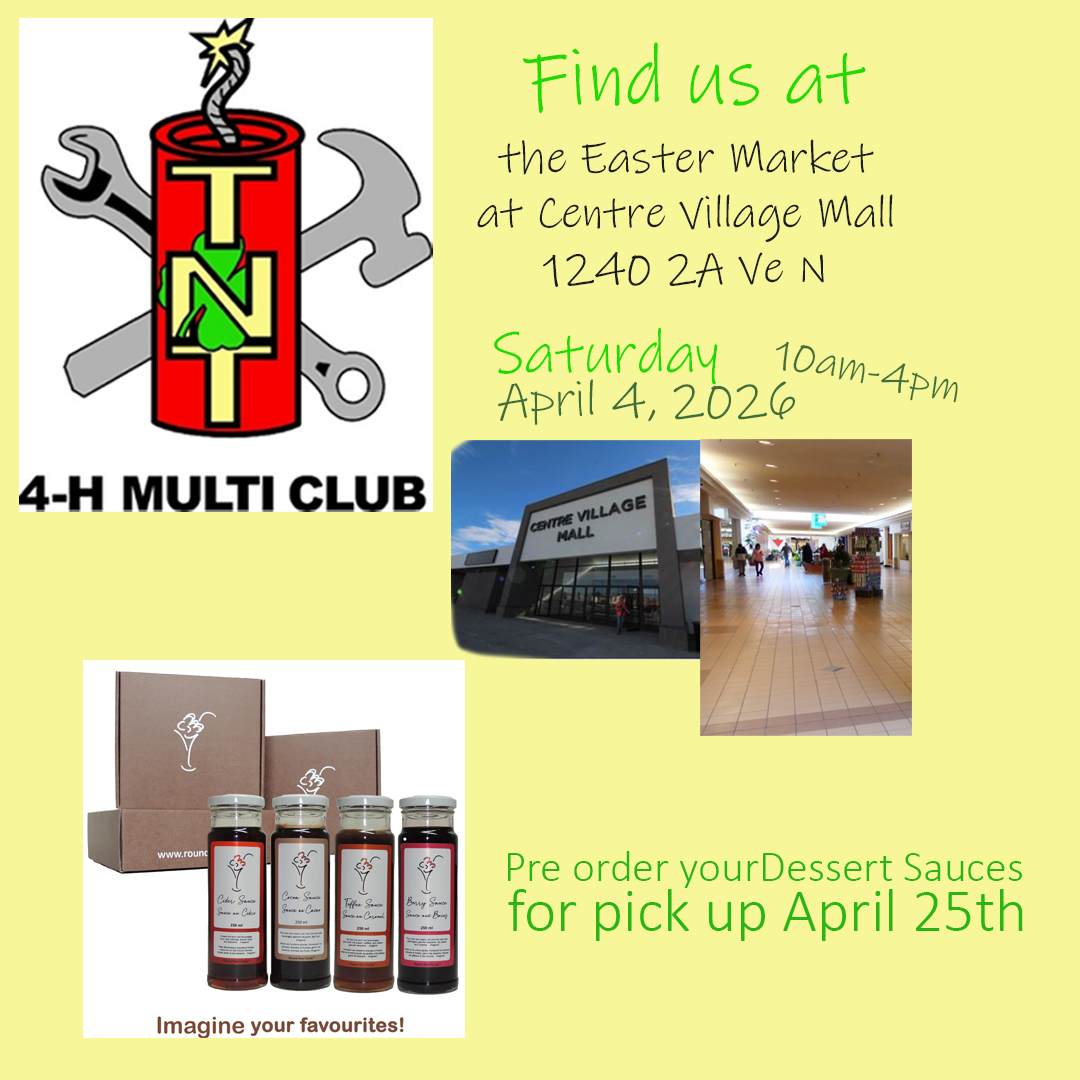 The TNT 4-H Multi Club is a youth development organization in the Lethbridge area. Part of the 4-H Alberta network, the club focuses on projects such as pheasant raising, crafts, food, archery, and welding. Youth engage in supporting community and participating in local conservation efforts.